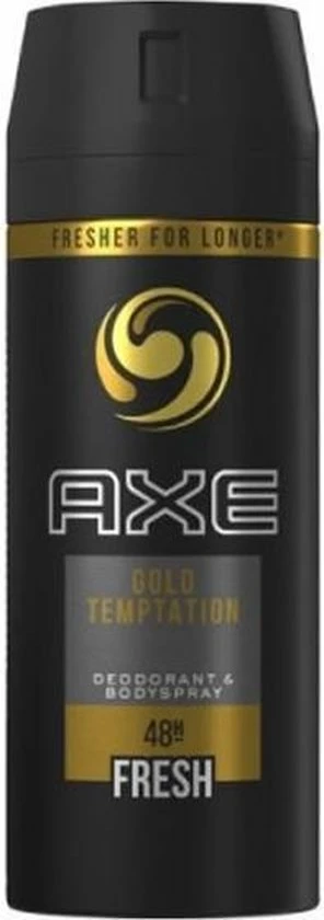 AXE Deospray – (Nieuw) Gold Temptation 150 ml, Axe Gold Temptation Deodorant Spray is een frisse en intense deodorant die je 48 uur lang beschermt tegen zweet. Met deze deodorant hoef je je dus nooit meer zorgen te maken over natte oksels of een vieze zweetgeur. Daarnaast laat Axe Gold Temptation je ook nog eens heerlijk ruiken. Inhoud: AXE Deospray – (Nieuw) Gold Temptation 150 ml