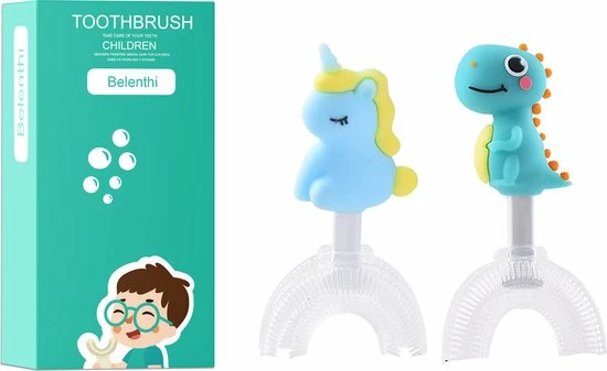 Handige U-vormige tandeborstel voor kids van 2 tot 12 jaar. De zachte U-vormige tandenborstel van Belenthi is gemaakt van hoogwaardige silliconen, waarmee het volledige gebit van uw kind gemakkelijk handmatig gereinigd kan worden. Het product is speciaal ontworpen voor de gevoelige tanden van kinderen.