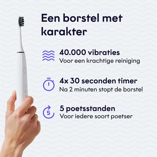 De elektrische tandenborstel heeft een ingebouwde 4×30 secondentimer die aangeeft wanneer je van kwadrant moet wisselen. Na twee minuten poetsen stopt de borstel vanzelf zodat je nooit te kort of te lang poetst.