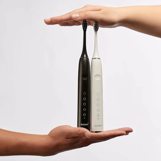 De krachtige vibraties van de BOOMBRUSH zorgen voor witte tanden, zo is je tanden bleken of whitening strips gebruiken niet meer nodig.