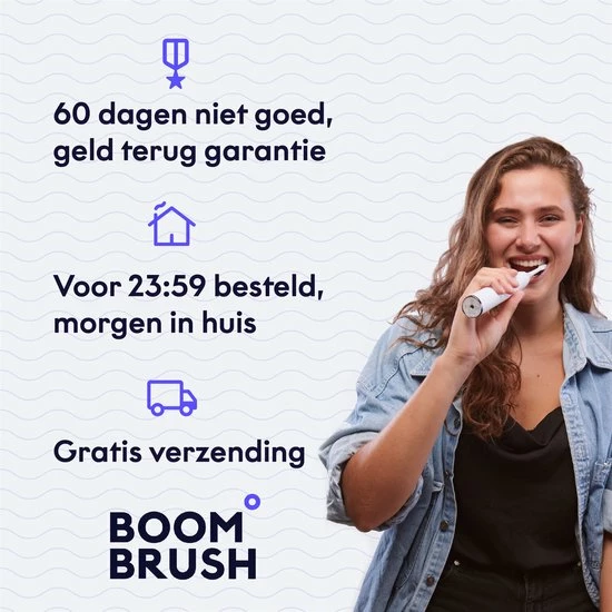 De kracht van de BOOMBRUSH kan even wennen zijn, daarom biedt Boombrush de mogelijkheid om de tandenborstel 60 dagen gratis uit te proberen. Niet goed = geld terug.