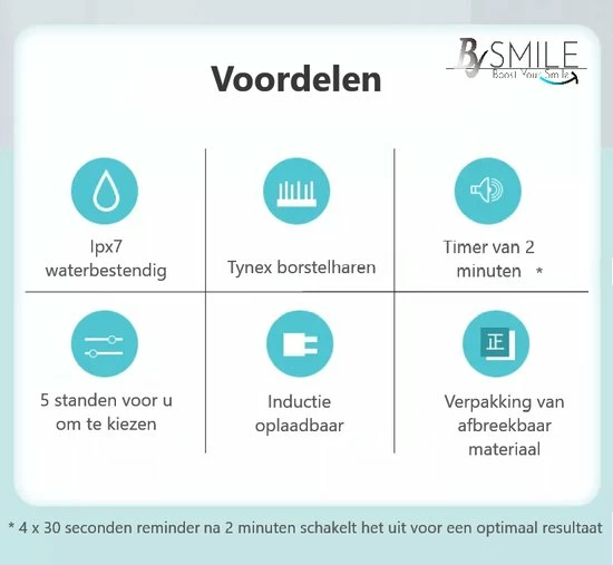 De BySMILE® electrische tandenborstel heeft 5 verschillende standen. Hiermee wordt er voor elk probleem een oplossing aangeboden. Je kunt kiezen uit: Clean, White, Polish, Gum Care en Sensitive.