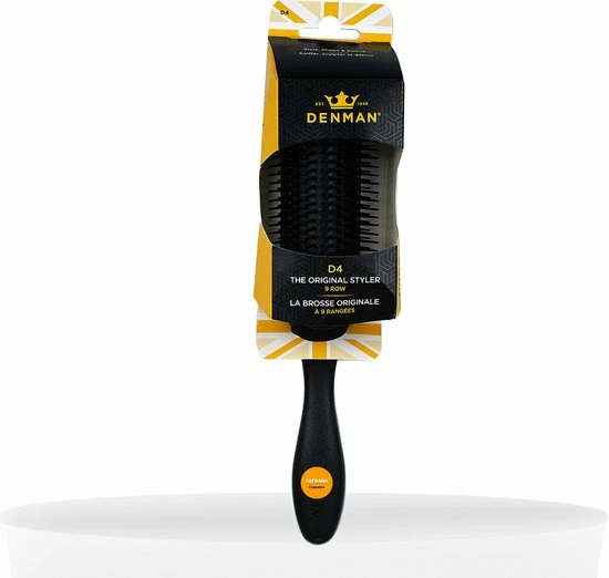 Denman Originals Brush D4 Large 9 Rij (Zwart) Ref.DE004BBB. Een fijne borstel is belangrijk voor een gezonde uitstraling van het haar en om haarbreuken tegen te gaan. Een luxe borstel die lekker in de hand ligt en heerlijk door het haar glijdt. Geschikt voor lang haar.