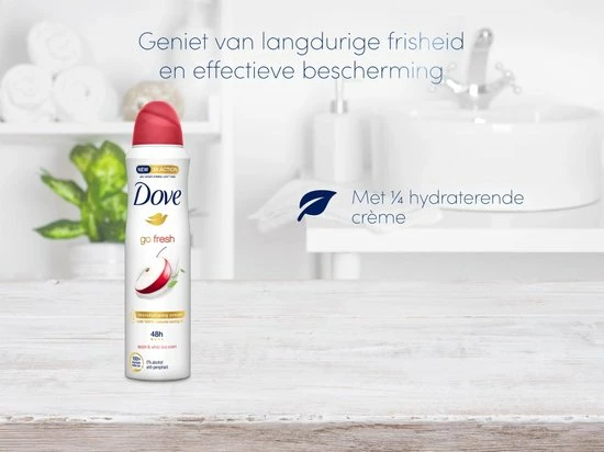 Ben jij op zoek naar een anti-transpirant met een heerlijke frisse en exotische geur? Dan is Dove Go Fresh Apple & White Tea Anti-Transpirant Deodorant Spray iets voor jou! De fruitachtige, bloemige geur van appel en witte thee geven je de hele dag een fris en verzorgd gevoel – wat de dag je ook brengt! Er gaat niets boven een lekkere koude douche ‘s ochtends om echt wakker te worden en ons schoon en hygiënisch te voelen. Konden we dat gevoel maar in een flesje stoppen en het de hele dag meenemen. Nu kan dat, met Dove Go Fresh Apple & White Tea Anti-Transpirant Deodorant Spray. De heerlijke geur is alles wat je nodig hebt om dat frisse gevoel de hele dag door te behouden.