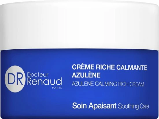 Deze rijke azuleen creme van DR Renaud is een herstellende balsem met een rijke en volle textuur die ervoor zorgt dat de droge tot zeer droge huid goed verzorgd wordt en op de juiste manier gevoed wordt. Bevat onder andere azuleen, bijenwas en lavendelolie met verschillende werkingen; Azuleen zorgt ervoor dat de huid verzacht en kalmeert, bijenwas beschermt en voedt de huid en lavendelolie herstelt de huid.