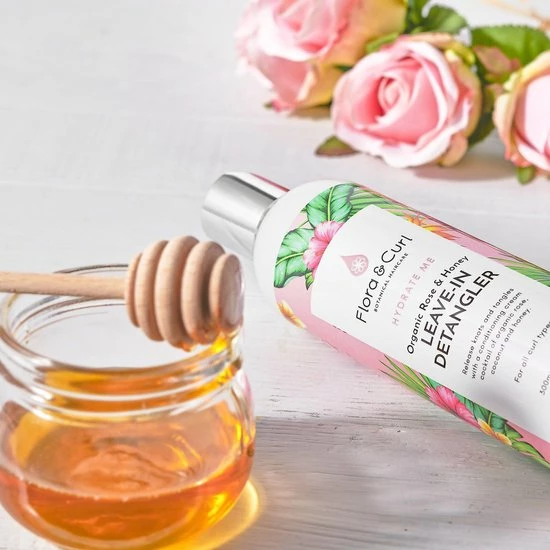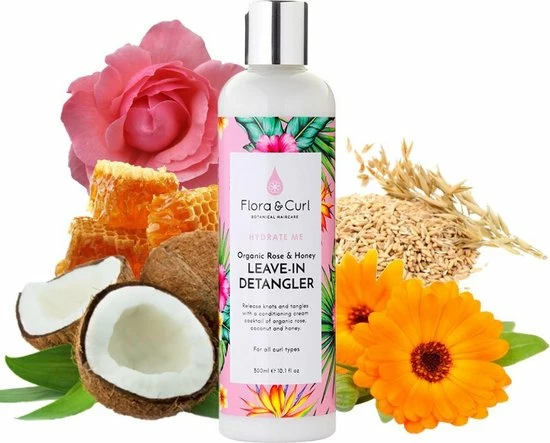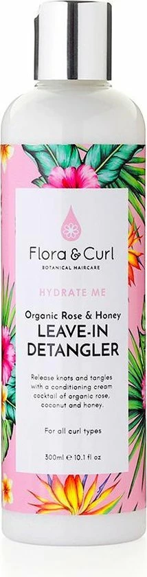 Flora & Curlβs Organic Rose & Honey Leave-In Detangler maakt je haar zacht en voegt precies de juiste hoeveelheid βslipβ toe die je nodig hebt om knopen en klitten los te maken. Zodat doorkammen en stylen van je haar een stuk eenvoudiger en sneller gaat. Het werkt bovendien als een leave-in moisturizer dankzij de mix van kokosolie en calendula olie, die perfect zijn voor het herstellen van een gezonde vochtbalans van het haar.