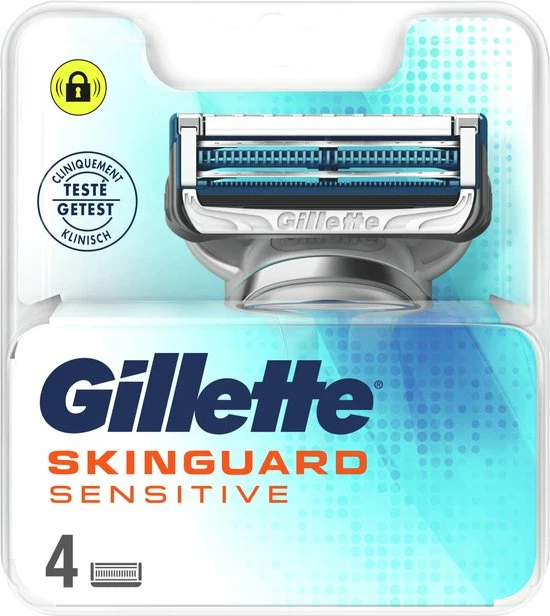 De Gillette SkinGuard Sensitive is het eerste scheermes van Gillette speciaal ontworpen voor mannen met een gevoelige huid. De unieke SkinGuard tussen de bladen absorbeert druk, maakt de huid plat en brengt de messen omhoog om het haar op huidniveau af te snijden, zodat irritatie voorkomen kan worden voor een verlichting die je kunt voelen. De 2 optimaal geplaatste mesjes minimaliseren het trekken aan haartjes. Het SkinGuard Sensitive scheermes is klinisch bewezen voor een gevoelige huid en geeft je de betrouwbare scheerbeurt die je verwacht van een Gillette scheermesje.