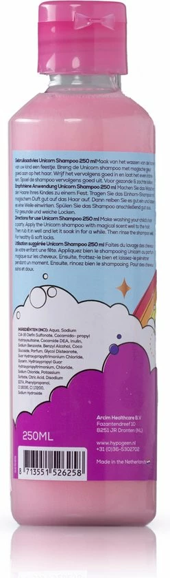 Wrijf de Unicorn shampoo met magische geur goed aan op het haar. Wrijf het vervolgens goed in en laat het even intrekken. Spoel de shampoo vervolgens goed uit. Voor gezonde & zachte lokken.