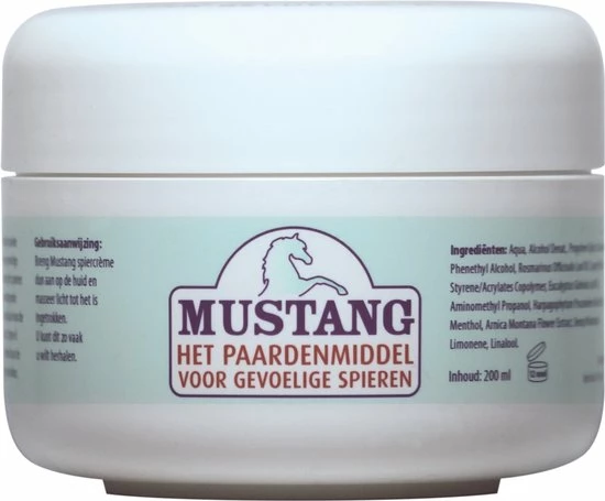 Mustang crème is door zijn unieke samenstelling weldadig voor de gewrichten en gevoelige spieren omdat het verkoelt en de spieren tot rust brengt en de gewrichten versoepelt. Tegelijkertijd maakt Mustang crème door zijn diep doordringende warmtewerking snel een einde aan stramme en stijve spieren. Het wordt gemakkelijk door de huid opgenomen.