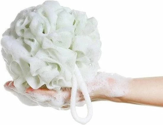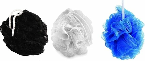 Relaxing Bad & Douche Puff – Netspons -Γ 14 cm.Geleverd in combinatie van 3 kleuren : Zwart – Wit – Blauw !!