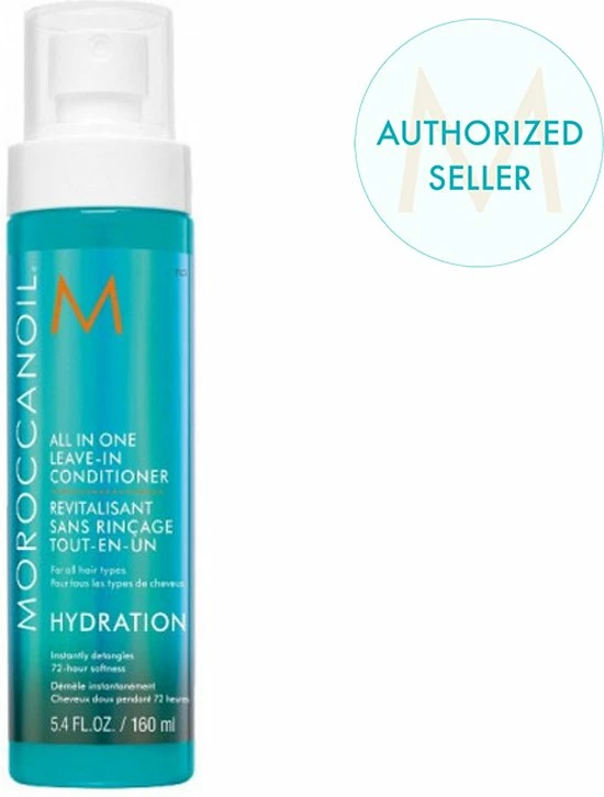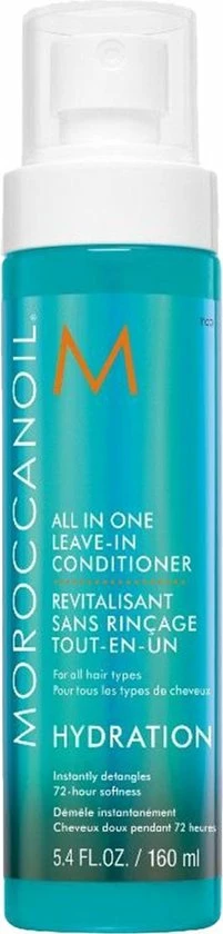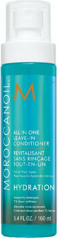 De Moroccanoil All In One Leave-in Conditioner betreft een melkachtige formule en bevat, naast arganolie en aminozuren, natuurlijk verkregen superfoods. Deze vullen het haar aan, voorkomen vochtverlies en beschermen tegen (thermische) schade. Moroccanoil All In One Leave-in Conditioner ontklit direct en maakt het haar klaar voor moeiteloze styling. Deze lichtgewicht, zijdezachte formule zorgt voor intense hydratatie en conditioneert tot zacht, hernieuwd haar terwijl het ook beschermt tegen (hitte)beschadiging en breekbaarheid.