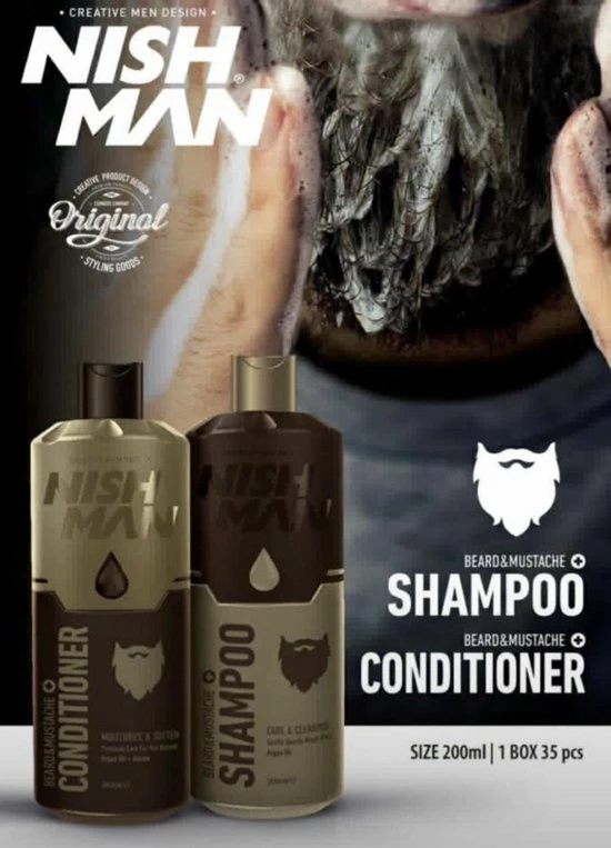 Kopen π― Nish Man | Baard En Snor Set | Shampoo En Conditioner | Panthenol | Parabenen Vrij | Met Argan – Jajoba – Amandel – Olijf Olie | Set Van 2 | 200 + 200 ML | Fles π€©