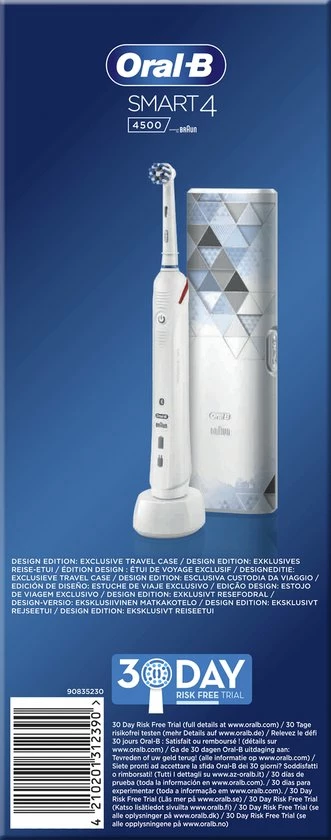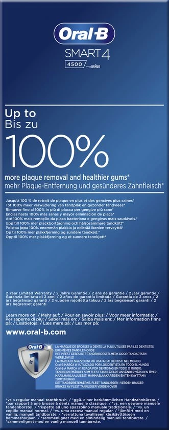 De Oral-B Smart 4 4500 heeft een geavanceerde Lithium Ion-batterij die meer dan twee weken meegaat. Zo hoef je niet na te denken over je oplader tijdens je vakantie.