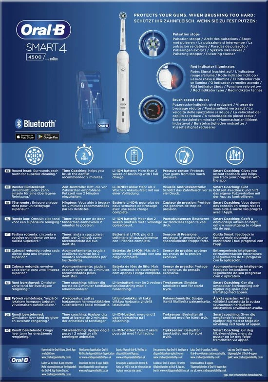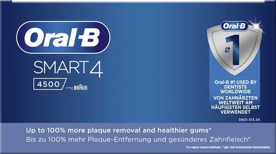 De Oral-B Smart 4 4500 verbindt met de Oral-B app, waardoor Smart Coaching mogelijk wordt. De app biedt je realtime feedback en helpt je je routine te verbeteren en je vooruitgang bij te houden.