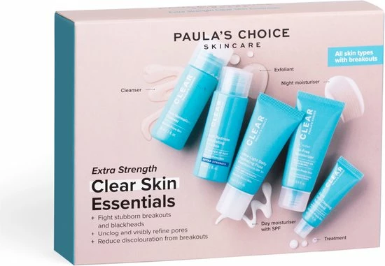 Deze vijfdelige set bestaat uit een reiniger, exfoliant, treatment en dag- en nachtcrΓ¨me. Kortom, alles voor je huid om er zo zuiver mogelijk uit te zien en aan te voelen. Geformuleerd om poriΓ«n op milde wijze te ontstoppen, roodheid te kalmeren en vlekjes na puistjes te vervagen. Beschermt de huid tegen zonneschade. De producten in deze set zijn allemaal mini’s. Perfect om uit te proberen.