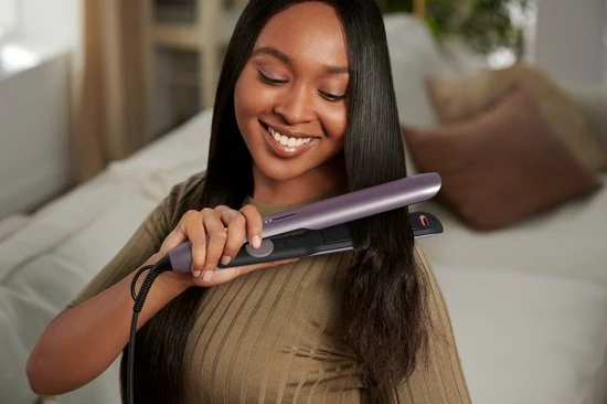 Je haar laten glanzen door ionenverzorging en de mooiste haar stijlen creëren doe je met de Philips 5000 series BHS530/00 – Stijltang. De stijltang zorgt voor minder hittebeschadiging waardoor het haar er gezonder uitziet.