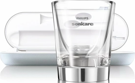 Zet je elektrische Philips Sonicare-tandenborstel in het oplaadglas. Kan ook worden gebruikt om je mond te spoelen na het tandenpoetsen.
