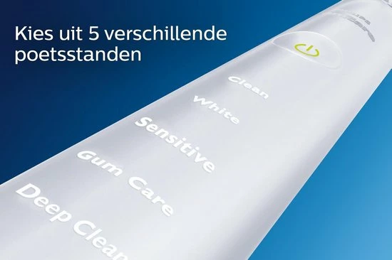 - De tandenborstel heeft 5 poetsstanden (Clean,White, Gum Care, Sensitive en Deepclean) voor optimale reiniging.