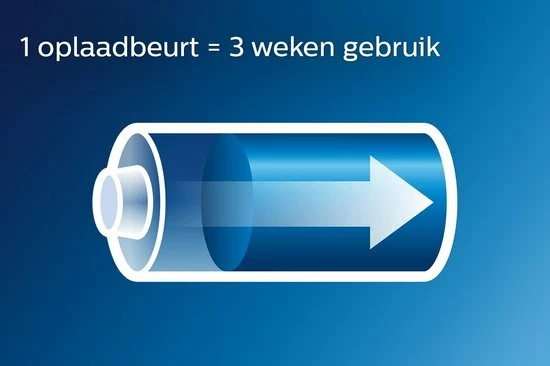 - De tandenborstel is drie weken te gebruiken zonder op te laden.