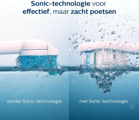 Hoe werkt de Philips Sonicare-technologie? De opzetborstel en handvat versterken de sonische technologie en zorgen voor een optimale reiniging. De snelle trillingen in het handvat zorgen namelijk voor 62.000 poetsbewegingen per minuut. Hierdoor gaat je tandpasta goed schuimen, welke diep langs je tanden en tandvlees komt.