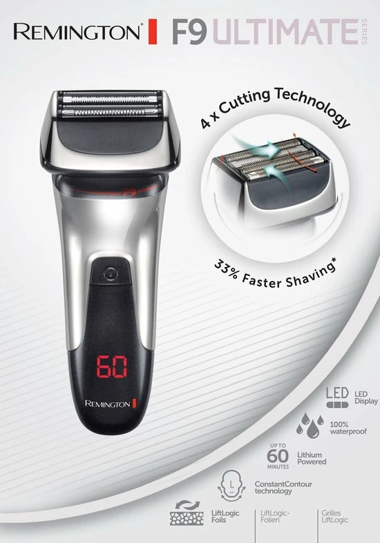 Een glad scheerresultaat krijgen is niet altijd even makkelijk. Remington brengt de nieuwste technologieën samen in combinatie met een mooie uitvoering voor de Ultimate Folie Series F9. Glad scheren was nog nooit zo moeiteloos. De F9 is het antwoord voor een gladde scheerbeurt.