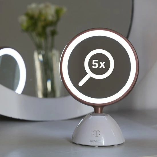 Deze spiegel van Revlon kan op al je reizen worden meegenomen dankzij het compacte ontwerp en de draadloze bediening.