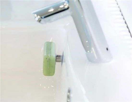 - Het lijkt alsof de zeep zweeft: de zeep blijft verticaal staan op gladde, schone wanden zonder oneffenheden (aardewerk, spiegel, glas, gootsteen, badkuip).