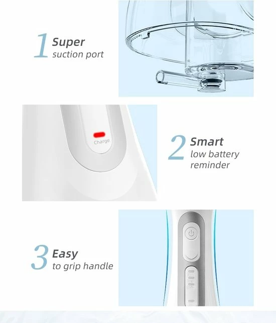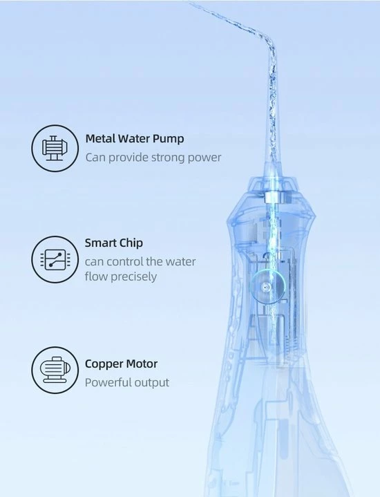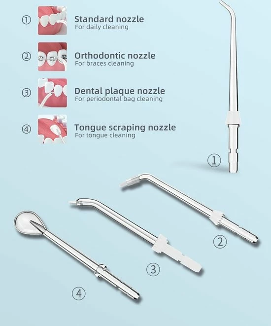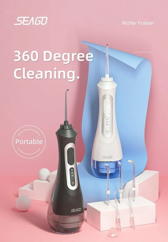 Productbeschrijving Waarschijnlijk weet je dat je je tanden het beste twee keer per dag kunt poetsen. Daarbij komt flossen om het hoekje kijken, want ook die mondverzorging is belangrijk voor het behouden van gezonde tanden en mond. Maar heb je weleens gedacht aan een elektrische waterflosser? Een tool die steeds populairder wordt, omdat het veel makkelijker is dan normale mondverzorging tools of flossen. Het vervelende bezoekje aan de tandarts om je tandplak te laten verwijderen, niet wetende of je die bagel met jam wel goed hebt weggepoetst? Die stress is vanaf nu voorbij. De deep cleaning elektrische waterflosser, is perfect voor mensen met een beugel; artritis; implantaten; kronen en natuurlijk voor mensen die vaarwel willen zeggen tegen plak én een slechte adem.