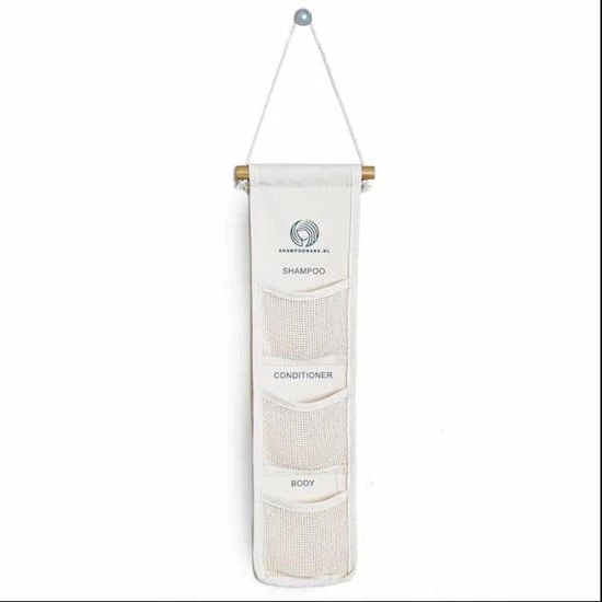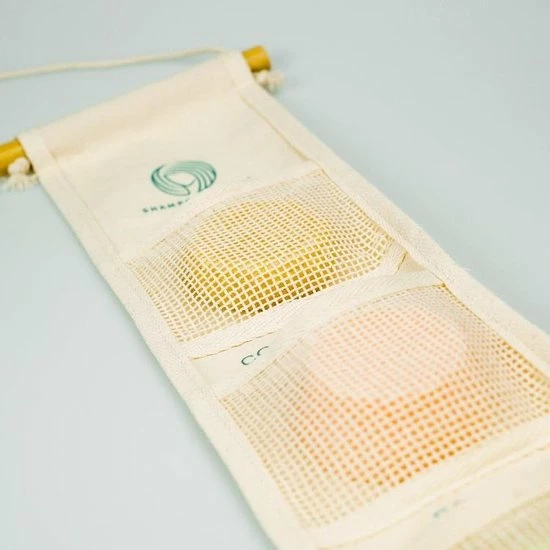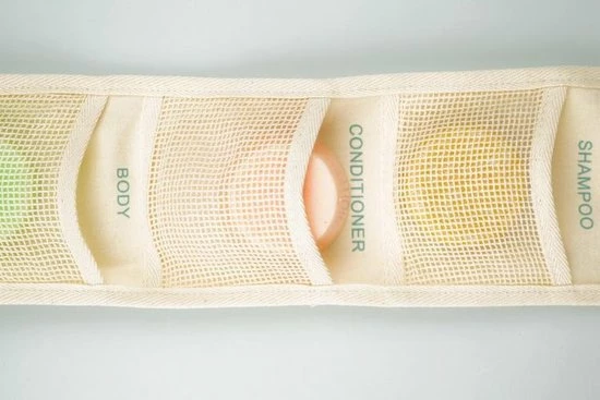 Deze Organizer van ShampooBars.nl is gemaakt van katoen en bamboe en is volledig plasticvrij.