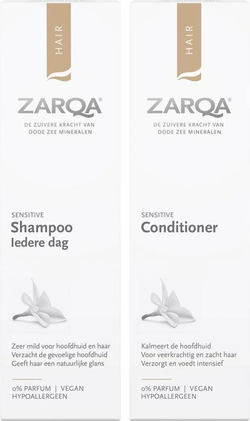 Zarqa Shampoo Iedere Dag is zo mild dat deze geschikt is om iedere dag je haren mee te wassen. De 100% vegan shampoo herstelt, hydrateert en beschermt de huid barrière van de hoofdhuid door het mineraalrijke Dode Zeezout en het stofje inuline en geeft je haren een glans en maakt ze soepel, sterk en zacht.